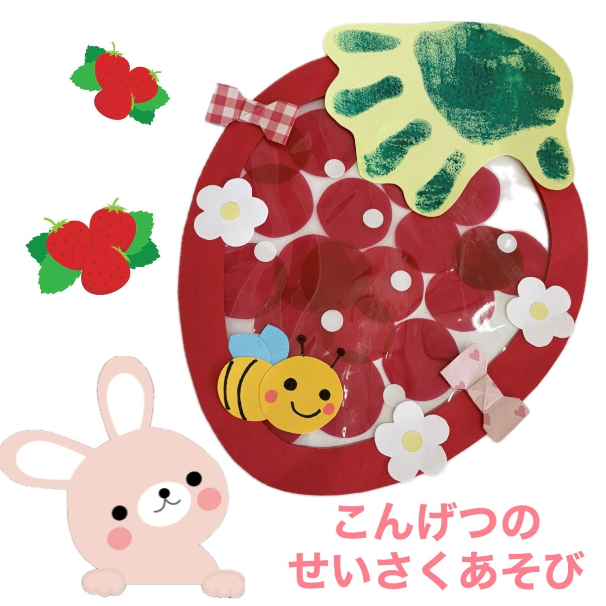 今月はいちごの製作あそびです。 春の訪れを感じましょう♪