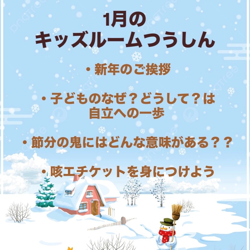 ~内容~ ・新年のご挨拶 ・子どものなぜ?どうして?は自立への一歩 ・節分の鬼にはどんな意味がある?? ・咳エチケットを身につけよう