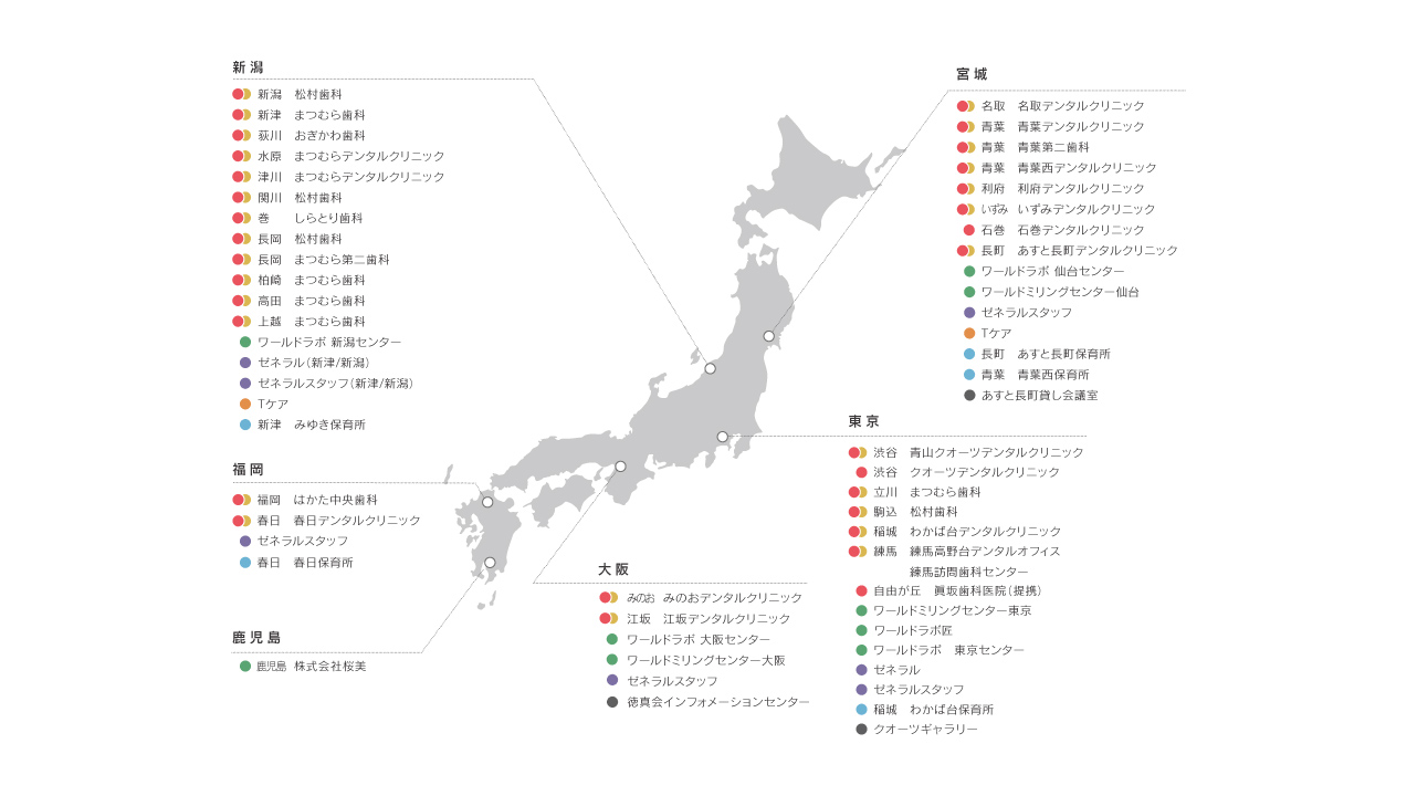 国内では、全国の歯科の患者さま総数の約0.3%に相当する、年間約70万人の患者さまの治療に携わる日本最大級の歯科医療グループになっております。