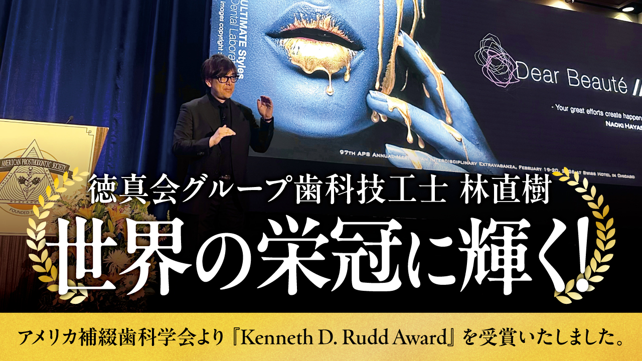 2026年2月19日、20日の2日間にわたり、アメリカのイリノイ州・シカゴにてアメリカ補綴歯科学会(American Prosthodontic Society:APS)の第97回年次総会が行われ、徳真会グループの歯科技工士である林直樹が『Kenneth D. Rudd Award』を受賞いたしました。